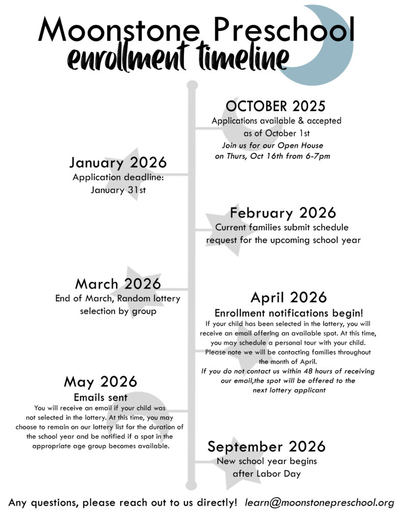 Monthly prices listed above are effective September 1, 2025. All prices are subject to change without notice. Moonstone’s average annual tuition increase over the past 10 years has been 3-6%.